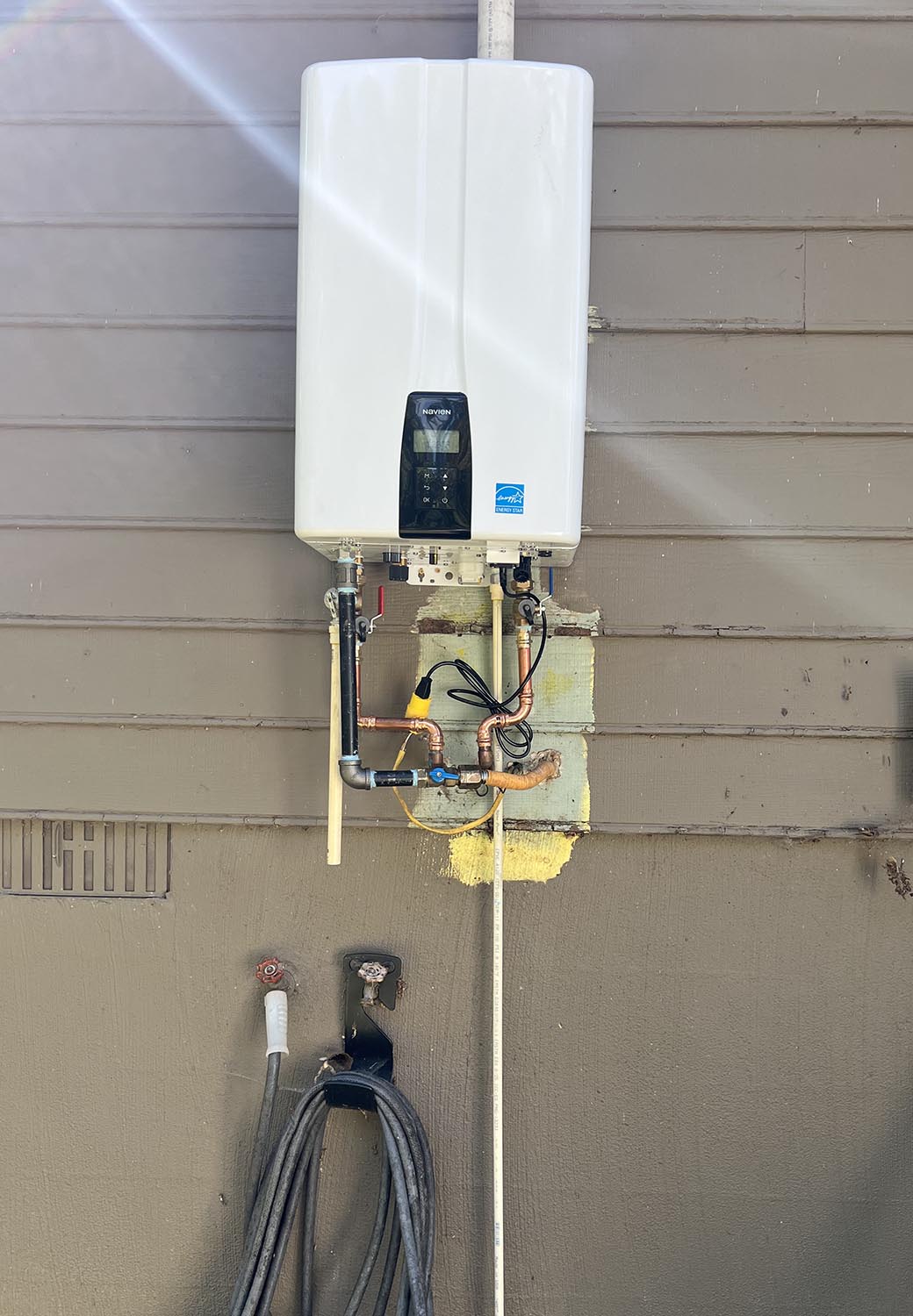 A tankless water heater, or on-demand water heater, provides hot water only when you need it. Instead of storing and reheating water in a tank, it heats water instantly as it flows through the system—giving you endless hot water and saving energy.